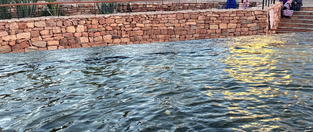 Alors nous voici arrivés à Tiznit, ville berbère avec sa fameuse source bleue, ses murs et tours couleur ocre et ses bijoux en argent. Mais surtout la ville a su garder son authenticité avec ses femmes drapées de couleurs magnifiques avec leurs charges portées sur la tête… on entre encore davantage en Afrique…