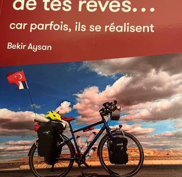 Alors que je déambulais dans le salon du livre à Colmar, à la recherche des derniers exemplaires de la chronique de la famille des Gribling de Wattwiller (la famille de ma mère) je tombe nez à nez avec une grande affiche : Méfie-toi de tes rêves… car parfois ils se réalisent. Et juste à côté, derrière une pile de livres bien rangés, Bekir Aysan l’auteur de ce périple ( et aussi de ce livre) qui m’accueille avec un grand sourire : qu’est ce qui vous a attiré ? Me demande-t-il après m’avoir observé un instant en train de décoder son kakémono. Je lui raconte mon projet de traversée du Sahara à vélo, et nous voilà à discuter de son périple, de ce que j’attends du mien aussi. Très vite une forme de symbiose s’opère, on se retrouve dans nos envies, sauf que je ne vais partir que dans 30 jours et lui en ai déjà revenu. ..tu verras, tu seras un nomade, et en tant que tel les rencontres t’ouvriront les portes de l’hospitalité… j’ai l’impression que mon voyage commence déjà… nous discutons à bâtons rompus avant que son éditeur ( enfin j’imagine) ne vienne nous interrompre. J’en profite pour lui acheter son livre et je laisse la place à une nouvelle cliente trop guindée pour entrer dans nos échanges. Bekir, si un jour, après mon voyage tu trouves un peu de temps, on se recontacte pour échanger nos expériences… https://mulhouse-istanbul.aysan.fr/mulhouse-istanbul/
